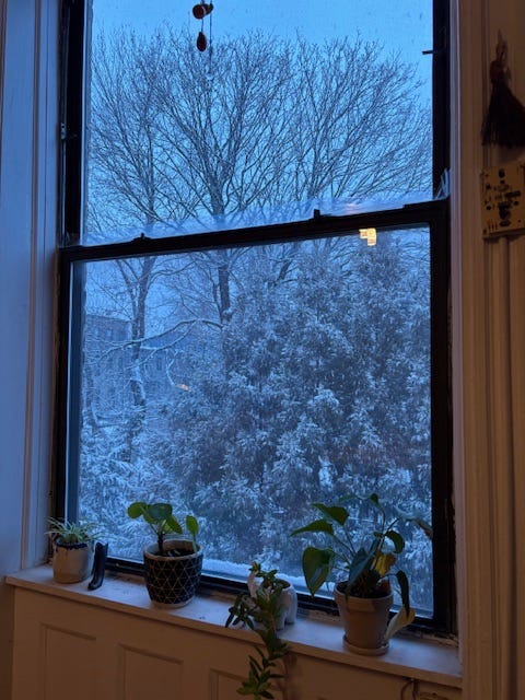 Getting as much sunlight as possible has been changing winter for me the last two years (still my least favorite, but Vitamin D and time outdoors can help). I also love listening to interviews with writers and will dip into the archives of Otherppl or The Sewanee Review Podcast if I want inspiration. One of my favorites is this conversation with Danielle Evans, who’s such a short story genius, about The Office of Historical Corrections. (Free, but don’t zone out and step in dog poop)