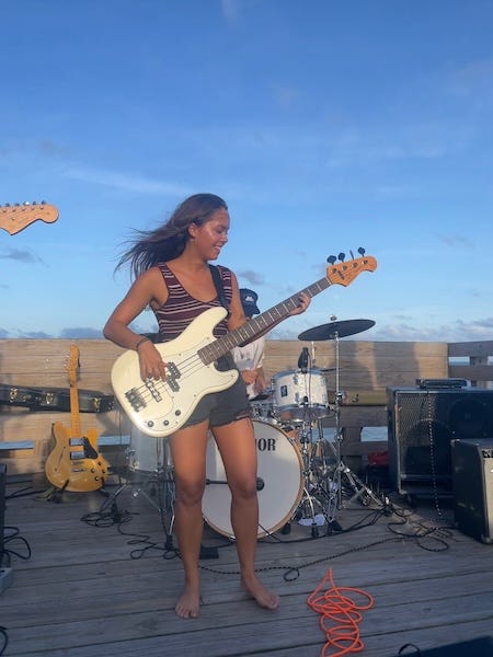 Specifically with music and my thesis, I was thinking a lot about the ways that a band creates this web of interpersonal dynamics. I think that anytime you have an artistic project where there's a lot of people, it's like being in a relationship with all those people. We've seen a lot of literature about bands, like Daisy Jones and the Six. I was just in New York and saw this play called Stereophonic about this band recording their album and the various webs of complicated issues and dynamics and fighting. I think I take a lot of inspiration from the interpersonal dynamics of being in a band.